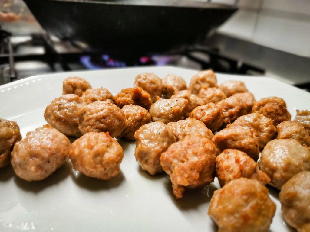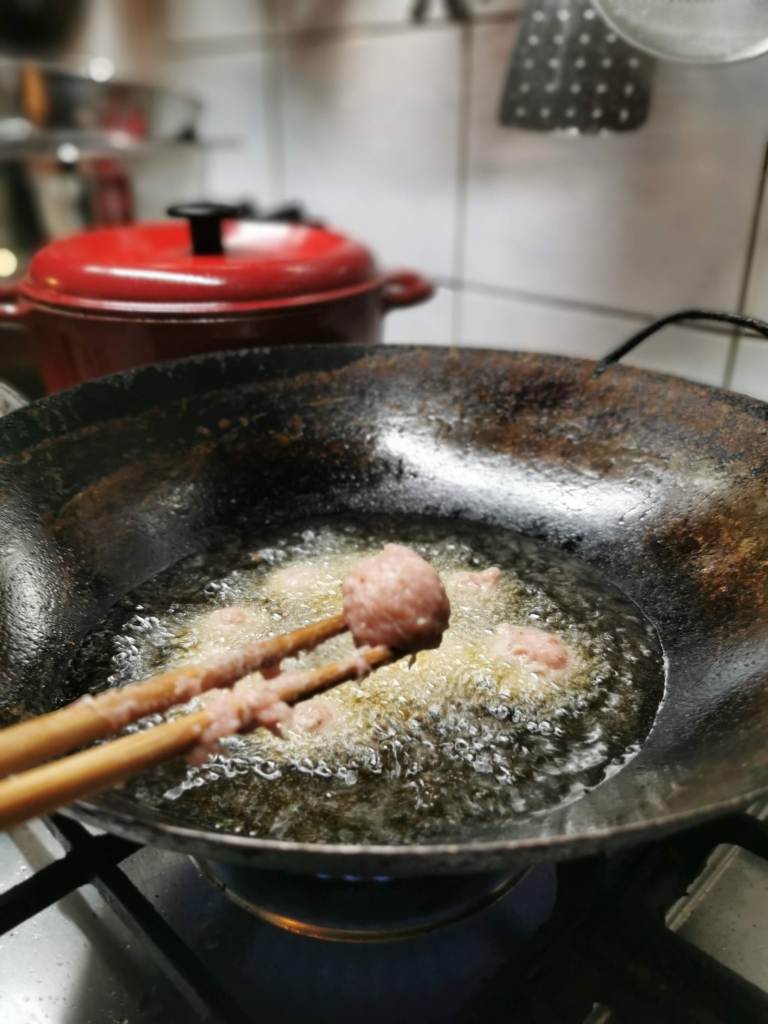 - Öl im Wok erhitzen, die Bällchen goldbraun frittieren.