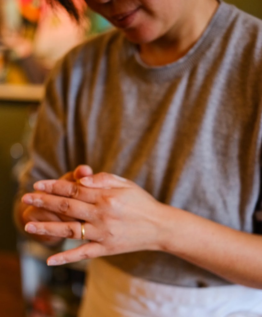 während ihre Hände in einem fast rhythmischen Tanz arbeiteten.